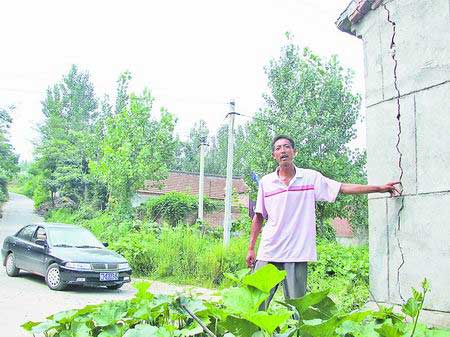 在现场,记者看到,李红军家的5间瓦房正处于“Z”字形道路下坡拐角处,后墙上有许多裂缝,西墙上的裂缝可伸进一个指头。“裂缝是车撞墙造成的。”李红军的母亲张妮边说边擦眼泪,“这5间房子我们不敢住了,生怕哪一天车再撞墙把房子撞塌。现如今,我们全家6口人都挤住在3间东屋里。”