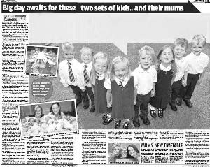 4年前,安娜在利物浦妇女医院接受剖腹产手术,生下了“三男一女”四胞胎婴儿——康纳尔、埃文、基恩和惟一的女儿伊默。仅仅10天后,萨拉也在医院中生下了“两男两女”四胞胎乔尔、里斯和艾比、米根。两组四胞胎出生后都相当健康,让医生们感到非常惊讶。
