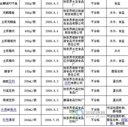 张家界市质量技术监督局2009年度旅游产品专项监督抽查检验不合格产品汇总表
