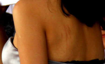 昨天,因不雅视频曝光而更加走红的兽兽(翟凌),在江苏南通车展亮相,尴尬的是在现场她不仅内衣走光,还被拍到背部出现神秘的抓痕。