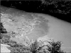 排污口的水质严重超标,与流经厂区的河水“泾渭分明”。