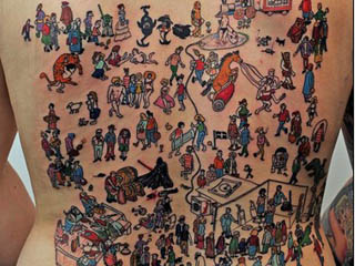 风行于英、美等国的寻宝童书《威利在哪里》(Where's Wally?),是许多人小时候的回忆。英国一位男子为了帮一家医院基金会募款,花了24小时在背部刺上一整幅的《威利在哪里》,这幅刺青替医院募得近10万元新台币。