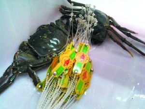 阳澄湖大闸蟹的防伪主要依靠蟹钳上的防伪戒指。而记者发现,所谓的阳澄湖大闸蟹均未佩戴防伪戒指。