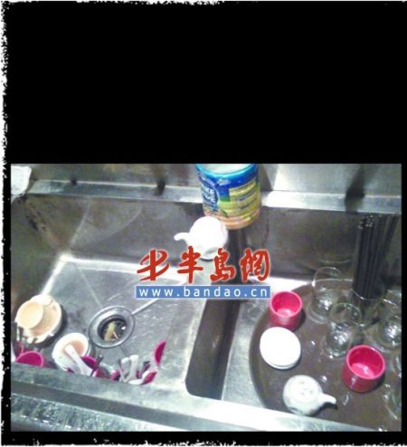 服务员负责清洗的餐具就更简单了,只需用清水冲冲。玻璃杯要用洗洁精清洗,有经验的服务员告诉记者,这样洗出来的玻璃杯比较亮,好看。记者观察了几个服务员的洗餐具过程:洗洁精倒入众多餐具中,水龙头打开,每个杯子大约清洗3秒后装盘。如此短的时间,洗洁精残余肯定洗不掉。洗完的餐具被端回来后,服务员要用布挨个擦干。记者发现,这块擦餐具的布经常几天才洗一次。