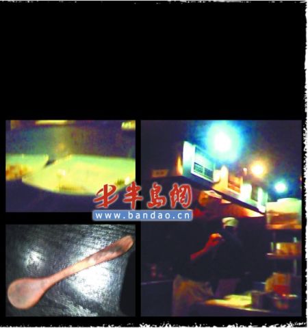 DOZO的勺子有很多种:吃冰淇淋的哈根勺,喝汤的白瓷勺,吃鲍鱼海参的小木勺等。记者在为客人服务时经常发现长霉变绿的木勺。服务员摆放、取用餐具,都直接用手碰触使用处,清查数量时经常一抓一大把。