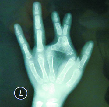 “普通的并指骨骼是分开的,但是小娜却因为骨关节严重畸形而骨骼连在一起。”小娜的主治医师儿童医院烧伤整形科田晓菲说,小娜的“剪刀手”与普通骨性并指相比,手术难度要大得多,其左手二、三指属于异常畸形的并指,形成一把剪刀状,伴手指发育不良,指骨弯曲。目前,经过田晓菲医生的精心手术,小娜左手终于恢复正常。