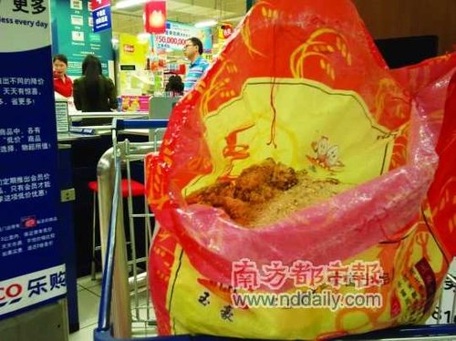 这年头,吃米都不安心。继前些天家乐福爆出“粪便大米”之后,昨日虎门乐购超市又现发霉大米,其变质部分结成一坨坨黄绿色的球状物,并发出恶臭。对此,乐购超市方面回应称,可能是大米的生产环节出了问题,超市将对涉事品牌同一批次的大米进行全面检查。