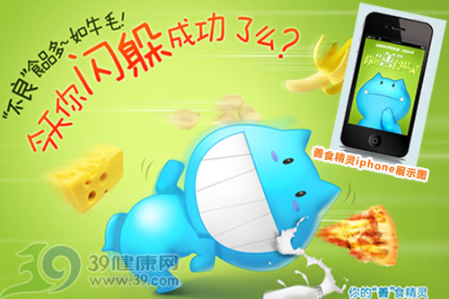图为“善食精灵”形象及iphone中展示图