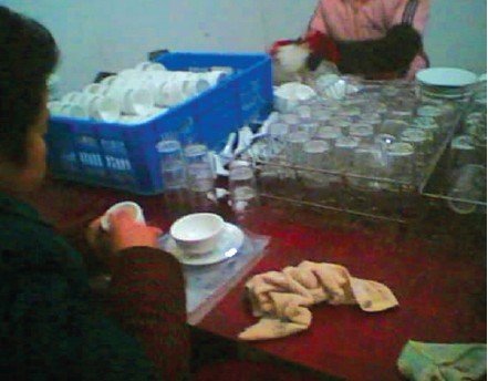 “消毒餐具”原是水洗后抹布擦干
