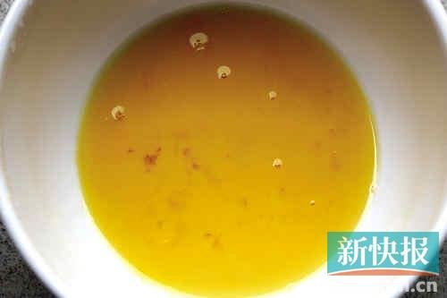 “你看,这蛋黄用力捏都不碎,最多就散开。”郭先生指着“假鸡蛋”的蛋黄说,他的这一袋土鸡蛋是今年1月30日在番禺区石楼镇赤岗新村一家超市买的,由于过年亲戚多,他一下子买了五斤,花了24.3元。