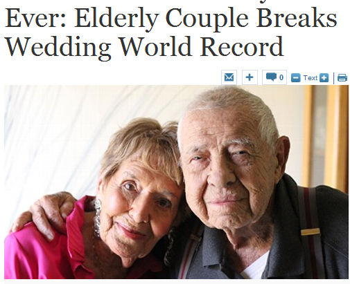 此前全世界年龄最大的新婚夫妇来自法国,他们于2002年结为夫妻,当时新郎96岁,新娘94岁。