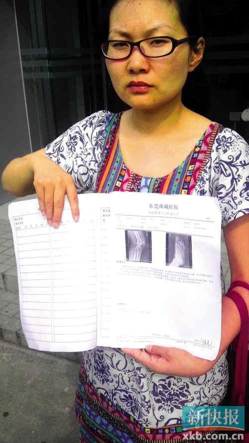 今年55岁的江西人老樊在东莞南城区福丰福特4S店当保安,6月28日晚10时许,正值夜班的他发现店里一扇电动卷闸门无法正常关闭,便登上梯子打算把门拉下来。“我爸他是一个人上去的,下面没有人扶着,结果一不小心就摔倒了。”老樊的儿媳方女士说,“当时还感觉没什么,就拿药酒擦了擦,结果左腿越来越疼。”方女士回忆,直到次日凌晨5时许,忍受不住的老樊打电话回家,儿子才连忙将他送往附近医院。医生诊断的结果是,老樊左侧髌骨发生骨折,右脚趾也有轻微伤情。“人在医院躺了5天,医药费已经花了1万3千多元。”方女士十分愤懑,“我们天天打电话给保安公司,他们理都不理。”据她介绍,事发后4S店和保安公司对此不闻不问,家里也只凑了部分医疗费,再也拿不出钱来,而老樊的左膝盖还得做一个手术,否则可能落下残废。无奈之下,伤者家属在7月3日下午找到了涉事4S店,讨要一个说法,由于情绪激动,双方还一度出现肢体冲突。