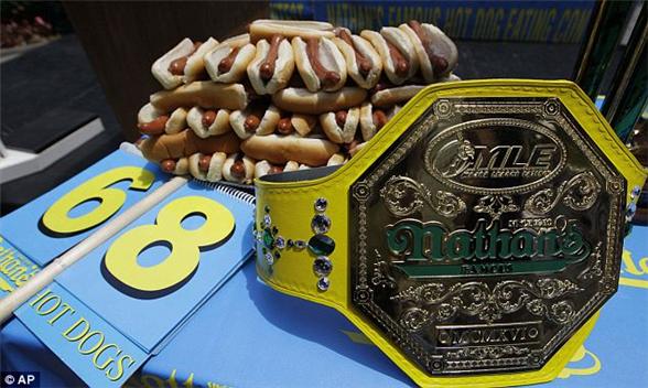 根据美国媒体报道,美国加利福尼亚州圣何塞市居民乔伊?切斯特纳斯7月4日在纽约康尼岛举行的吃热狗大赛上夺得了六连冠,以吃掉68个热狗的成绩创造了个人的最好记录。