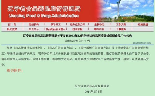 辽宁省食品药品监督管理局要求各地食品药品监管部门依据工作职能,继续加大对药品、医疗器械及保健食品广告的监管力度,确保公众饮食用药安全。